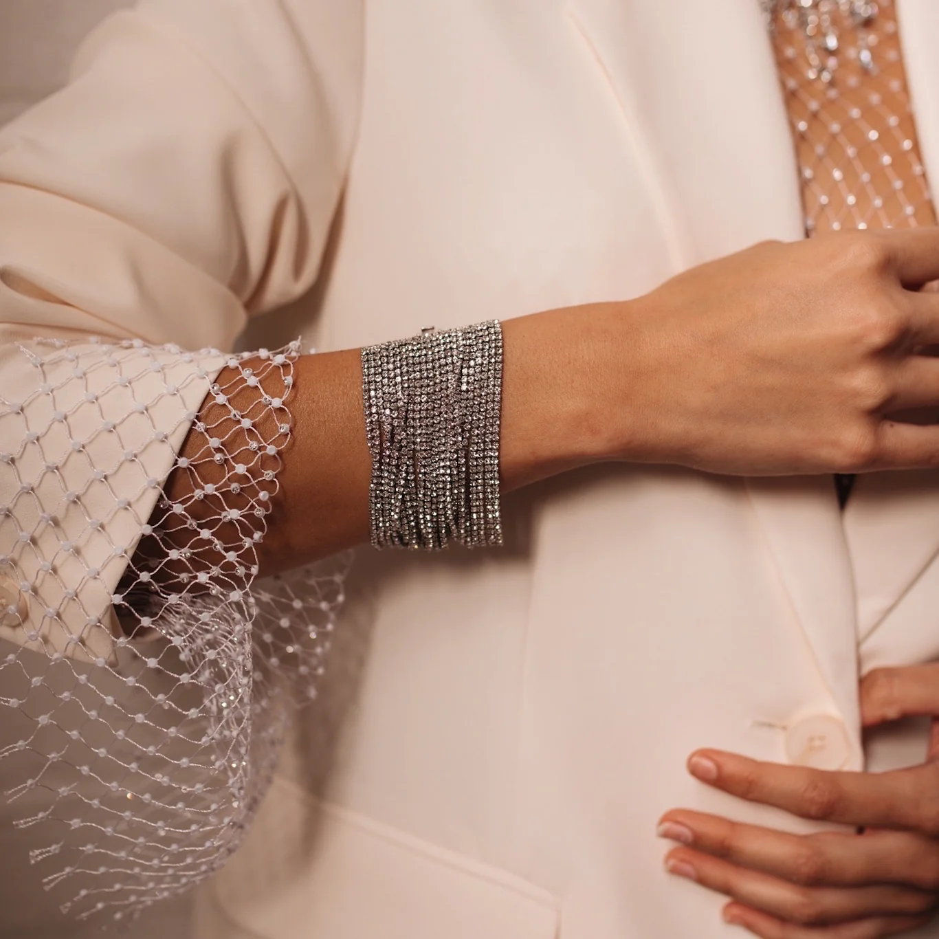 - Kira Kira Rhinestone Bracelet is an polished and glamorous bracelet with multi layers of dainty rhinestones. Each row of rhinestones are flexible and independent so this bracelet will move and jingle along with your movements. This bracelet will look fabulous in weddings but it can also dressed down and worn with jeans. It will flirt and dangle on your wrist on your special occasion.