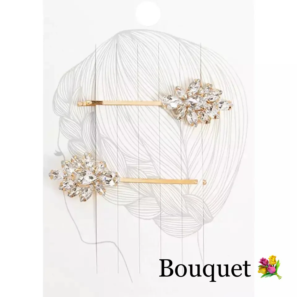 - Sparkly rhinestone hair clips add a romantic glam to your hair.
