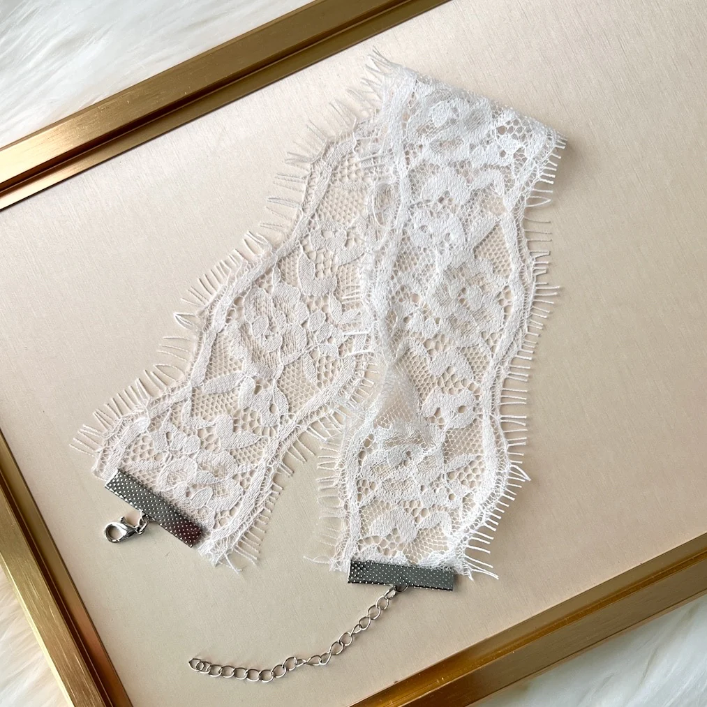 - Sexy and seductive lace choker in black or white. Will you be Naughty or Nice?